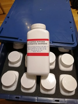 Kupferpulver ist in 2 kg PET-Flaschen verpackt.