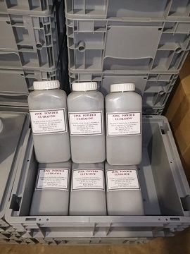 Das Zinkpulver ist in 2,5 kg PET-Flaschen verpackt.